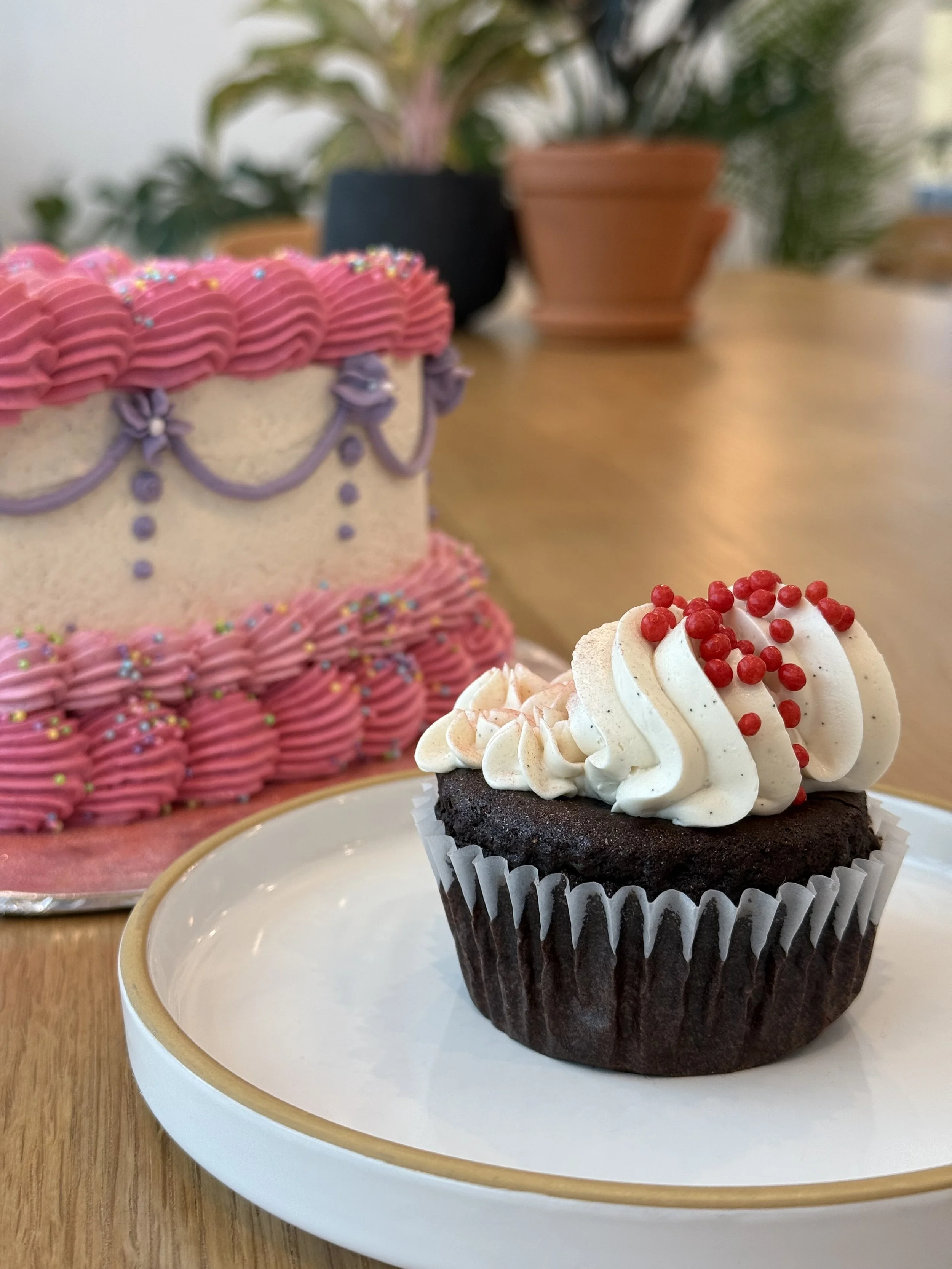 The Cake: Vanilla, Chocolate (GF available), Funfetti, Lemon, Coconut, Red Velvet, or GF Carrot Cake.